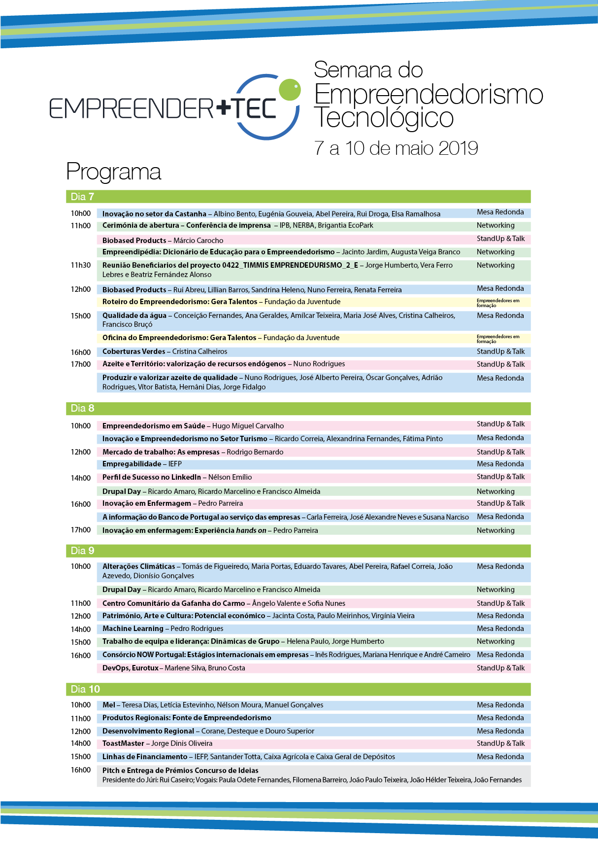 empreendedores de todos os municípios da NUTS III Terras de Trás os Montes Alfândega da Fé,